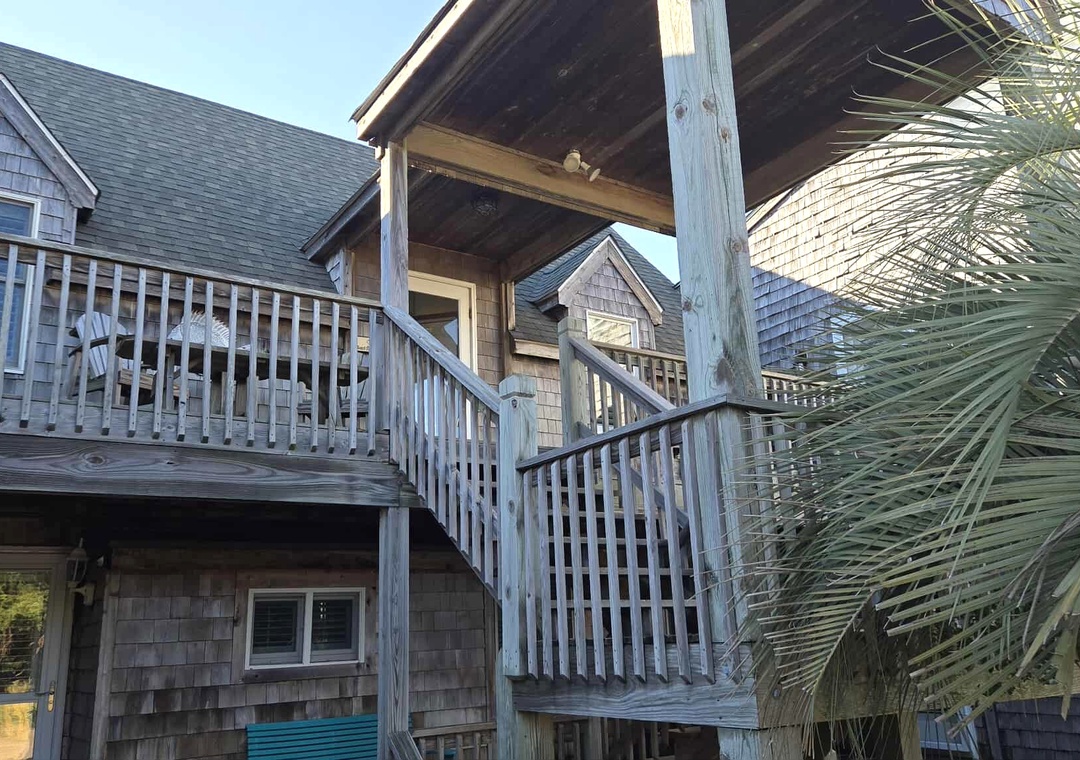 This second-floor villa offers a large living area with TV, full kitchen with dining table, queen bedroom with TV, spacious bath with whirlpool tub and separate glass shower, washer/dryer and complimentary wireless internet access. This villa is accessed via outdoor stairs.
