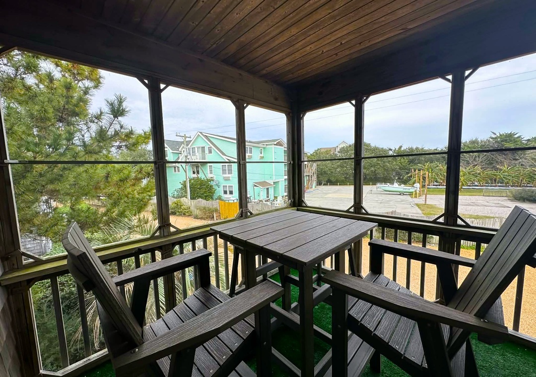This second floor villa offers a spacious living area with big screen TV, DVD, newly renovated full kitchen with bar and table seating, screened porch with a limited view of the harbor, wireless internet access, and washer/dryer access. The bedroom has a King Bed, TV, DVD, screened porch access, and a full bath with a newly tiled walk-in shower.