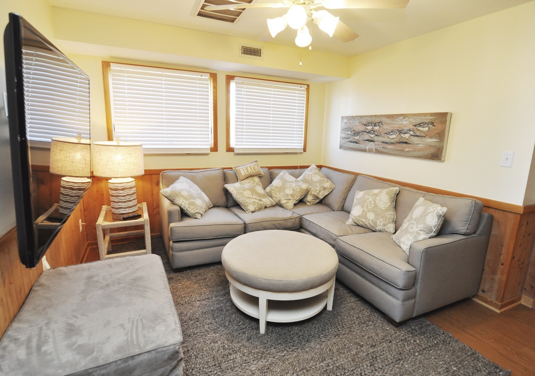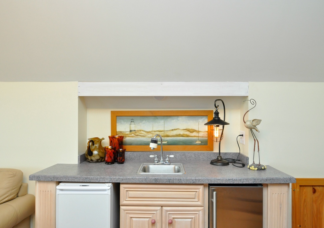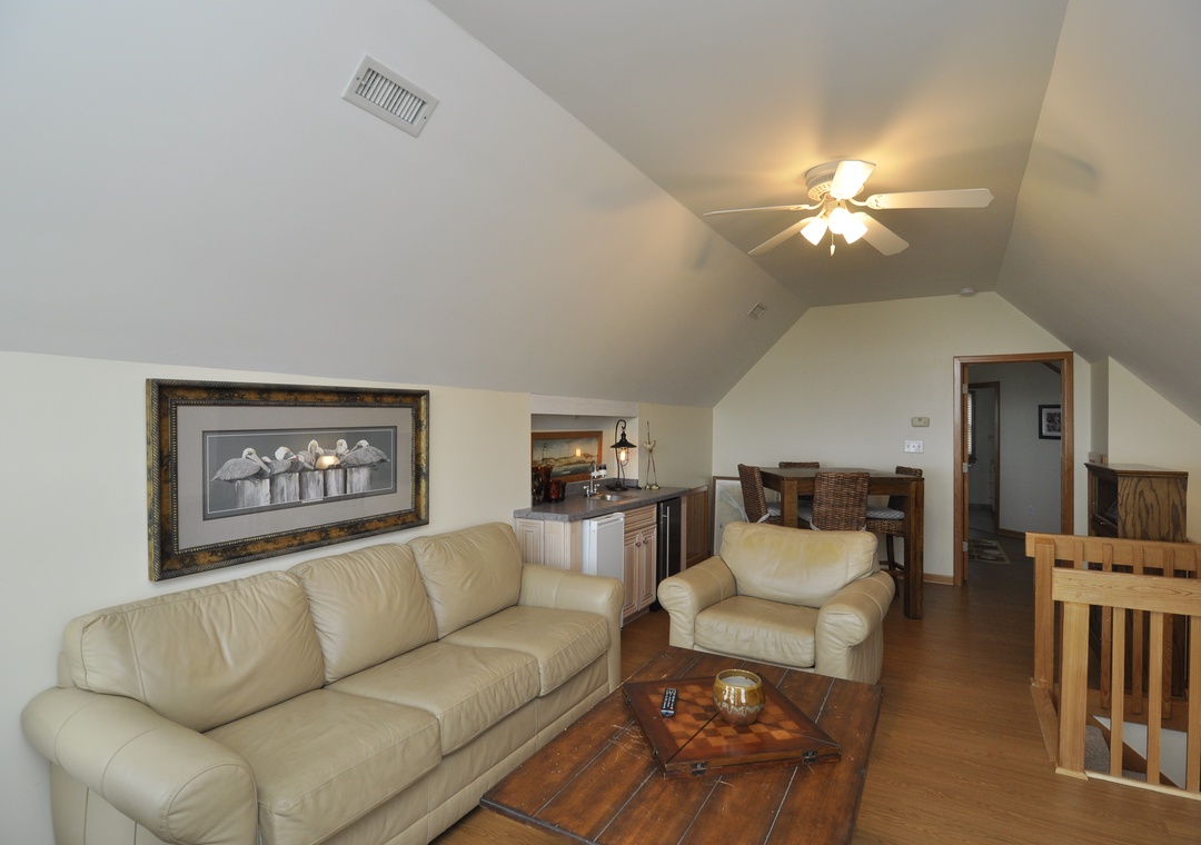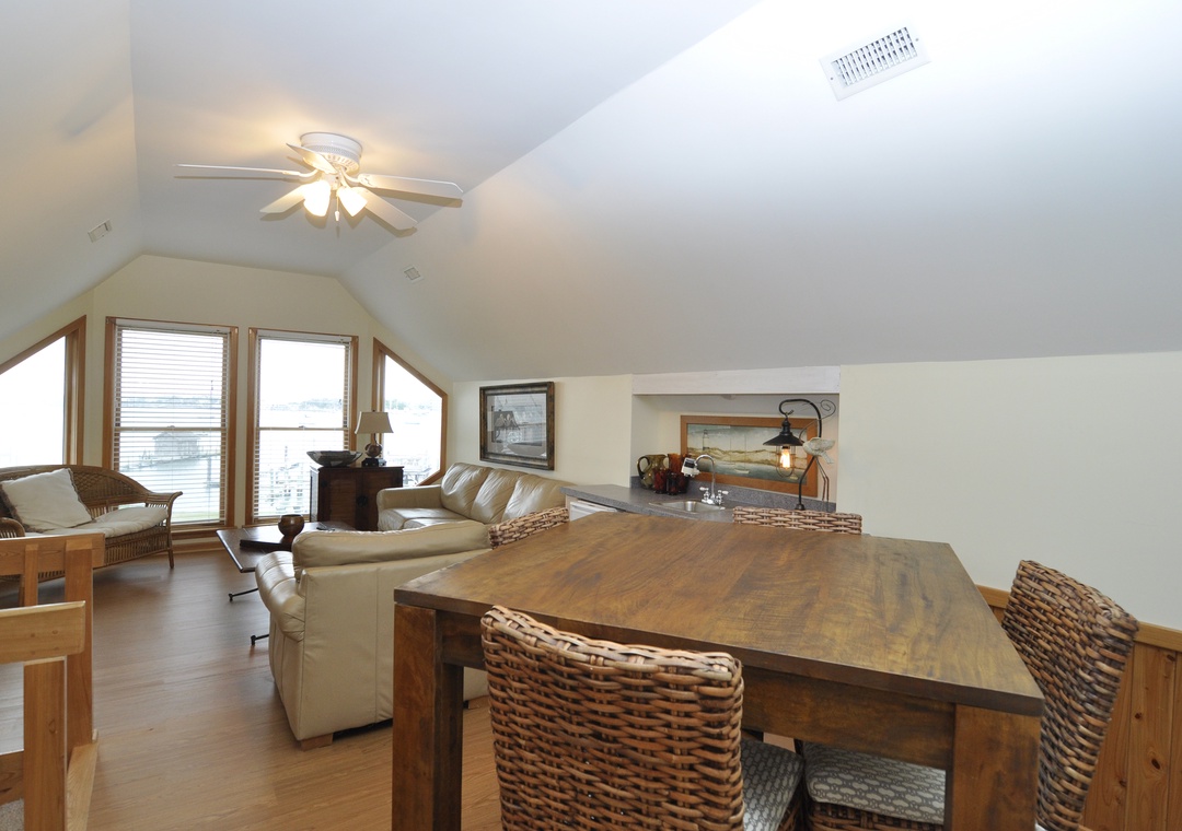 Amenities include central air conditioning/heat, ceiling fans, complimentary wireless internet access, phone, and 3 cable TVs. Washer and dryer. The 3rd-floor den area features a wet bar with a standalone ice maker.