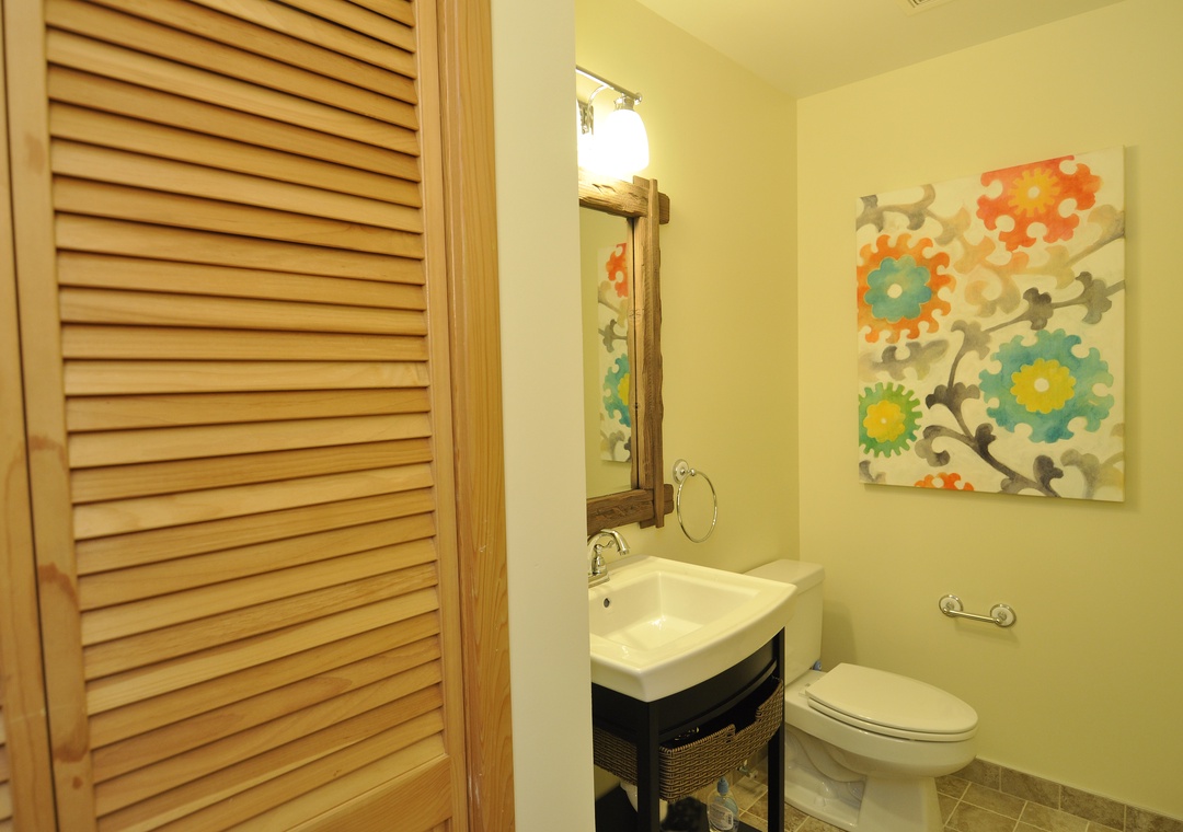 First Floor: Open kitchen, dining and living area with TV. Half Bath. Laundry Room.