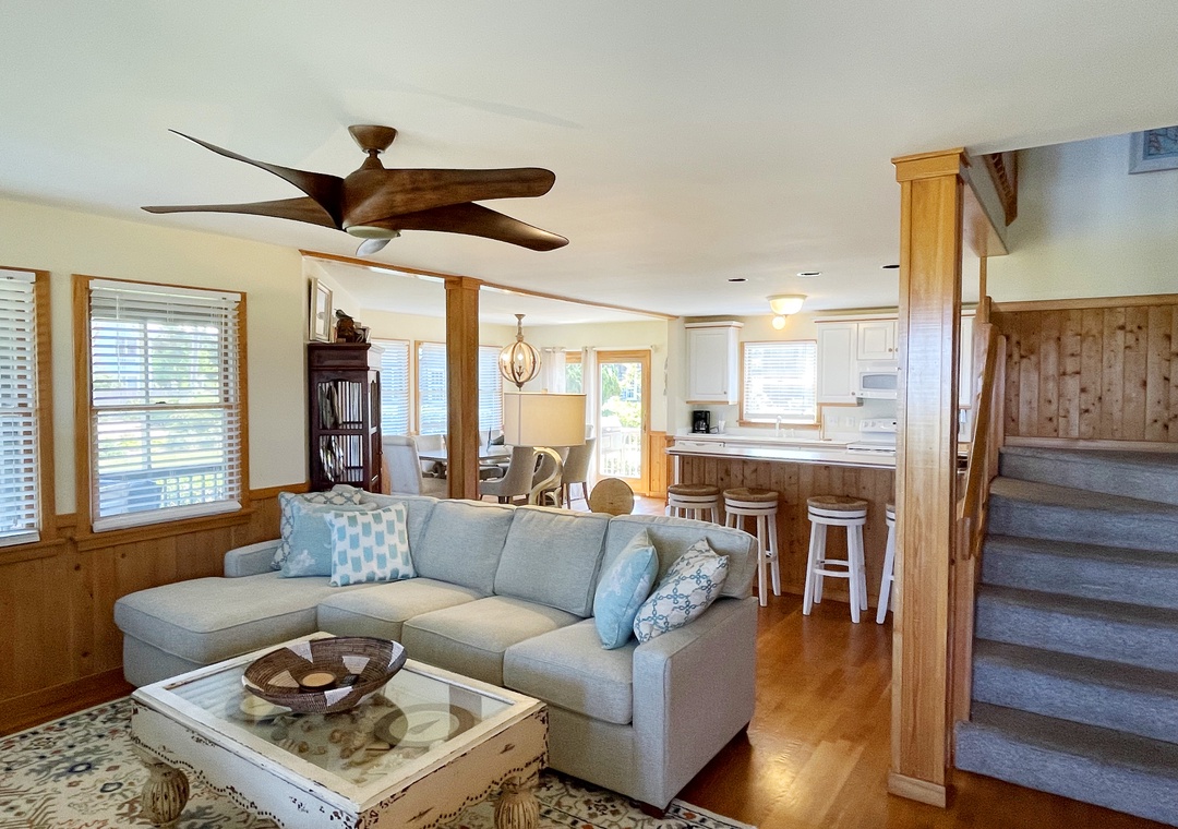 The exterior offers a screened porch, a front covered porch overlooking Silver Lake Harbor, and rear deck. Outdoor charcoal grill and outdoor shower. Dedicated boat slip.